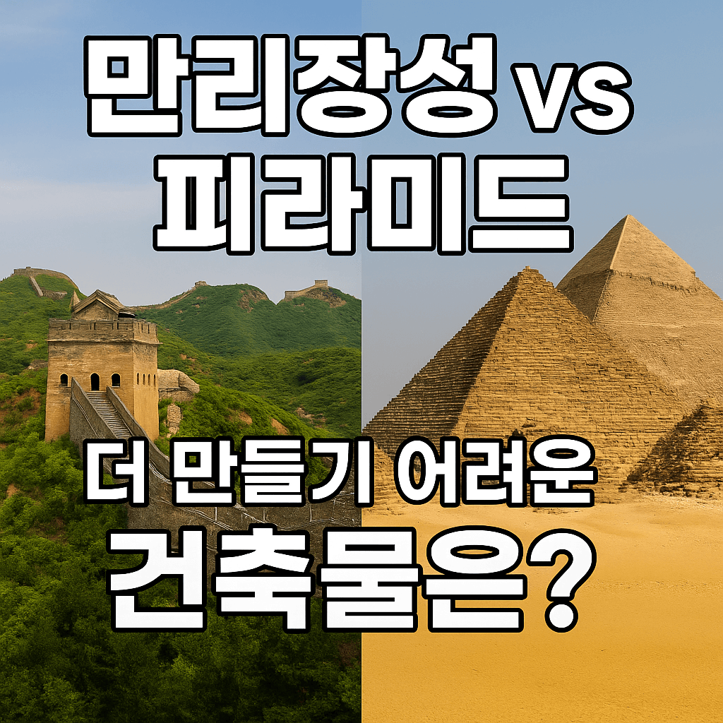 피라미드는 구조의 정밀함과 무게감, 설계 기술이 중요했다면 만리장성은 지형과의 조화, 규모, 장기적인 유지관리 측면에서 난이도가 높았어요.