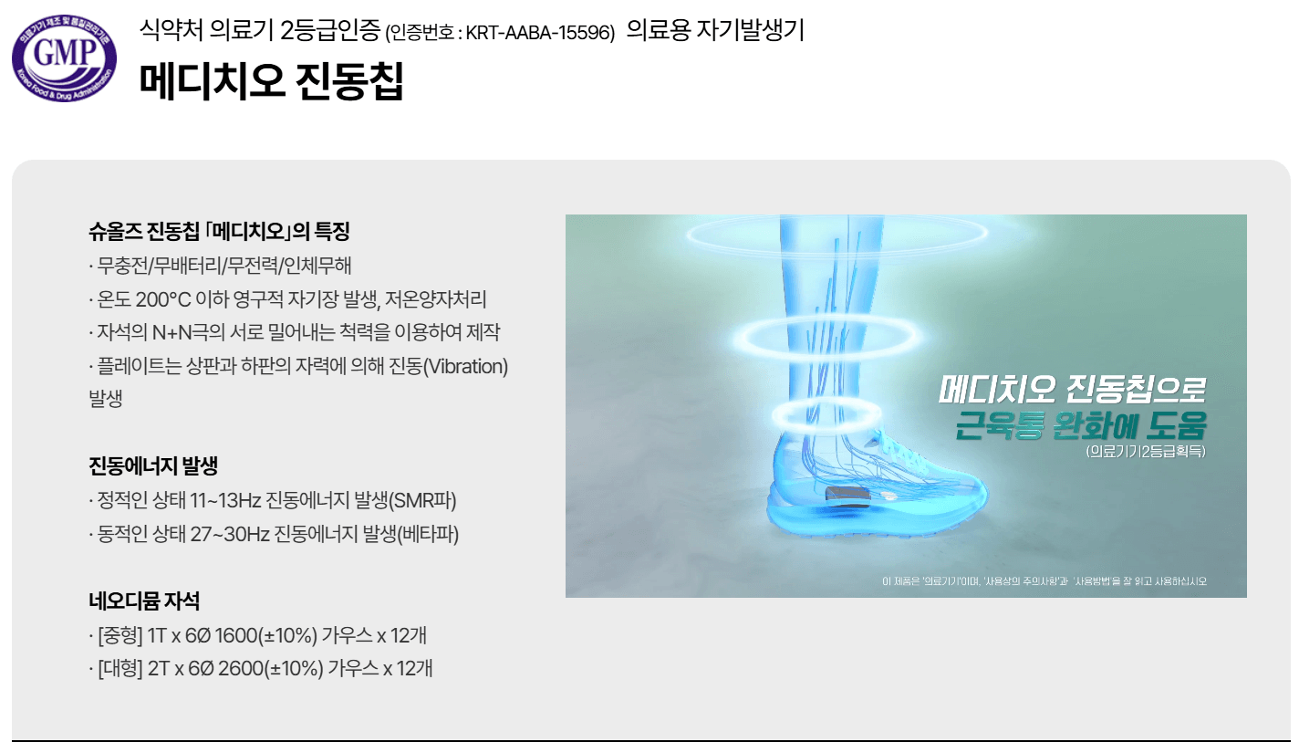 메디치오 진동칩이 자기장과 진동을 발생시켜 혈액순환을 촉진해줍니다. - IP 창