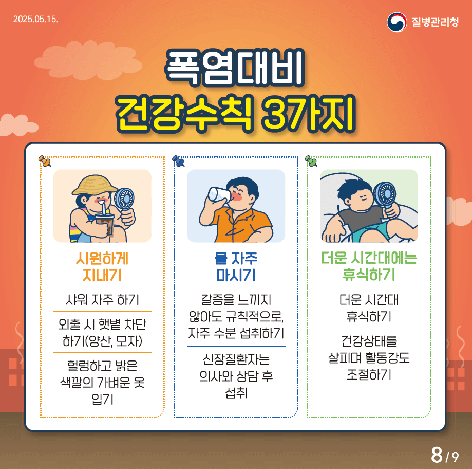 자료 출처: 질병관리청, 「폭염대비와 온열질환 예방을 위한 건강수칙 바로알기」, 2025.05.