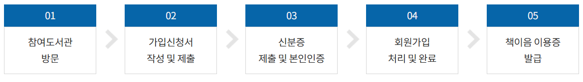 책이음 참여 도서관에 방문하여 가입신청서를 작성해서 책이음 이용증을 발급 받아 사용하시면 됩니다.