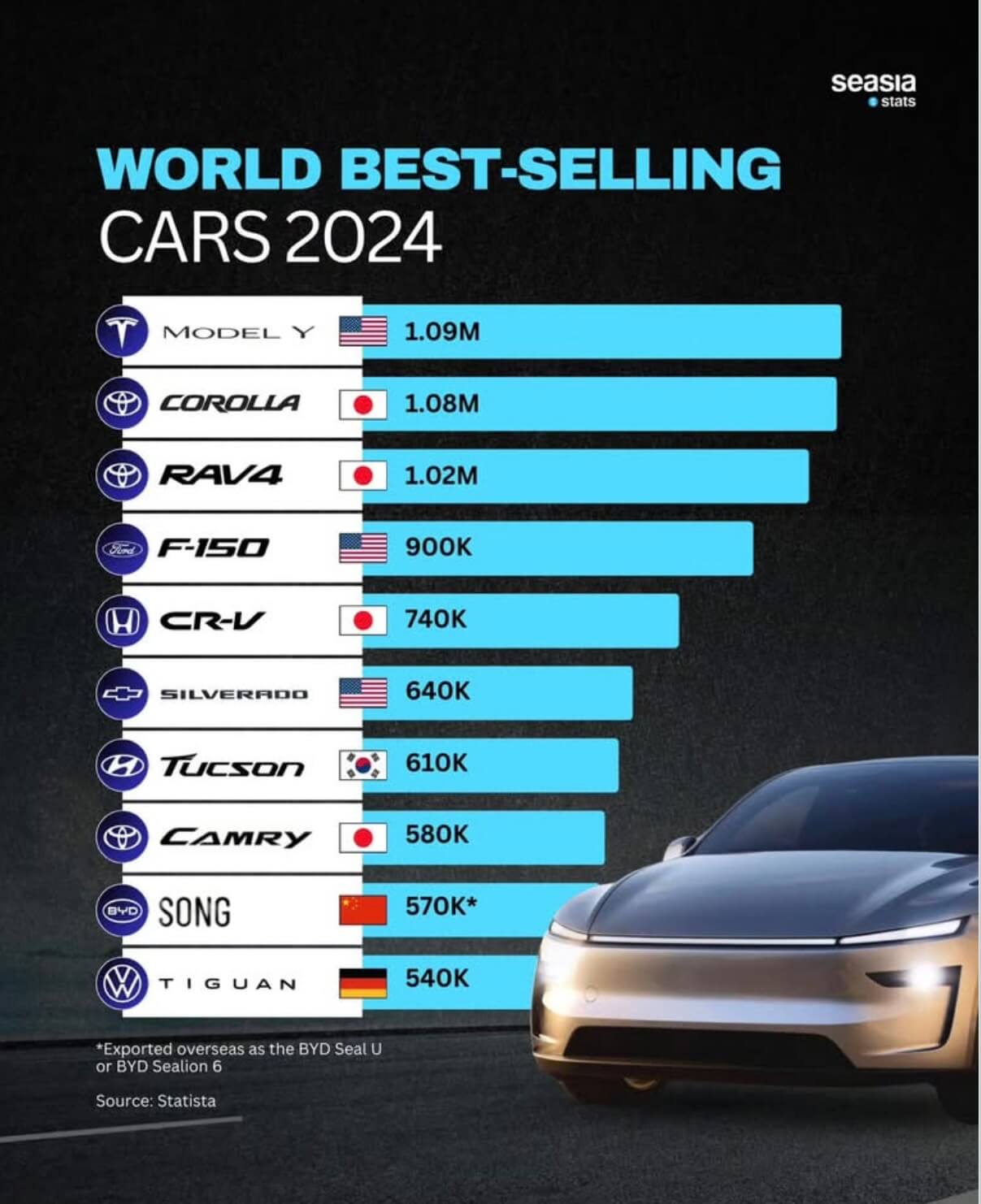 테슬라 모델 Y가 글로벌 판매량 1위를 차지하며 여전히 전기차의 강세를 입증했고 이에 반면 전통적인 내연기관 차량도 여전히 높은 인기를 유지하고 있습니다.