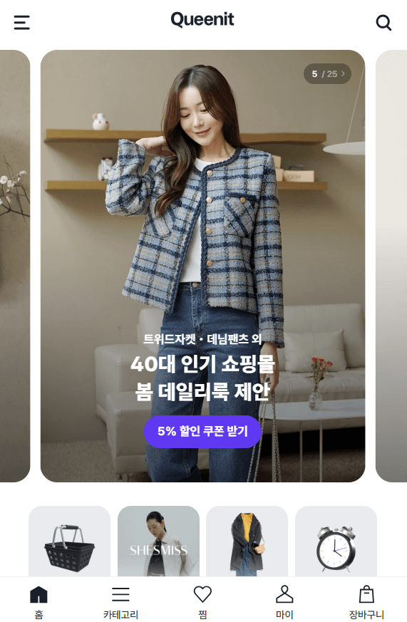 퀸잇은 40대 이상 여성들을 위한 맞춤형 패션 쇼핑 플랫폼이에요.